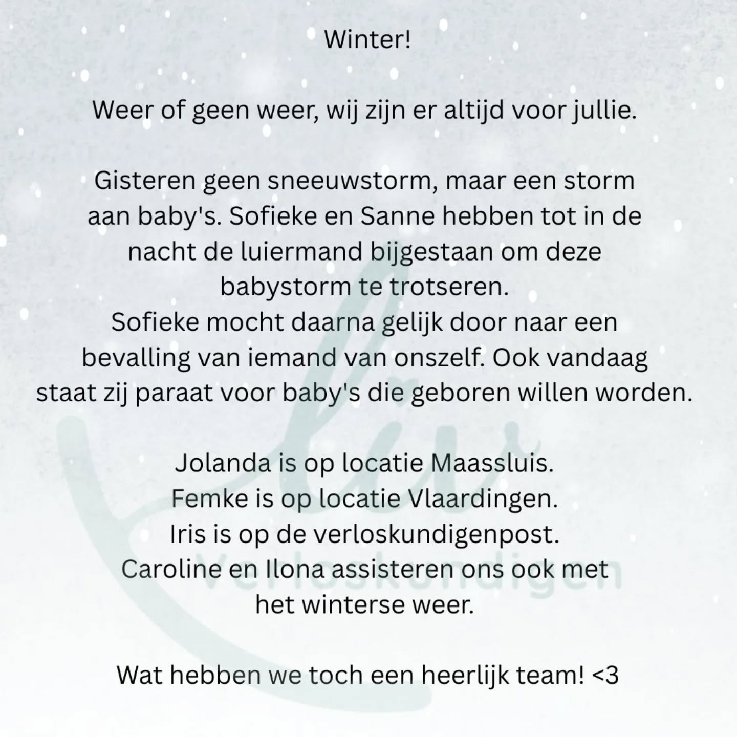 "Iedere zwangerschap en bevalling is uniek. Ieder mens is uniek. Iedere pasgeboren baby is uniek"
